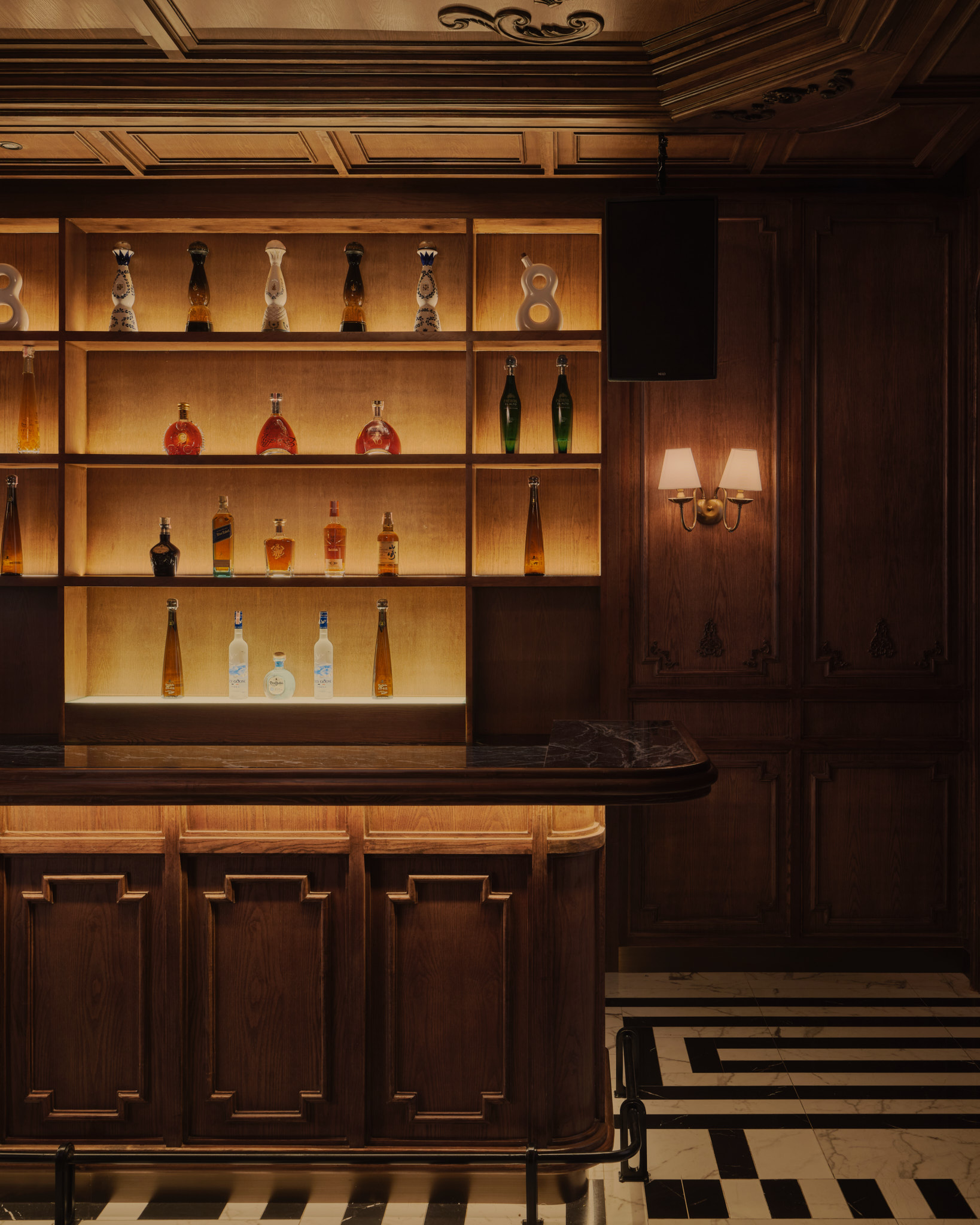 Inspired by the glamour of fashion show after parties, the space blends a stylish baroque interior with an electrifying atmosphere.